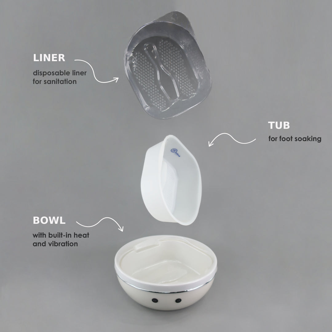 Please note: The Trio Bowl is not intended to hold water or other liquids directly and should not come into contact with harsh chemicals. For foot soaking during pedicures, we recommend using the tub insert with disposable liners.